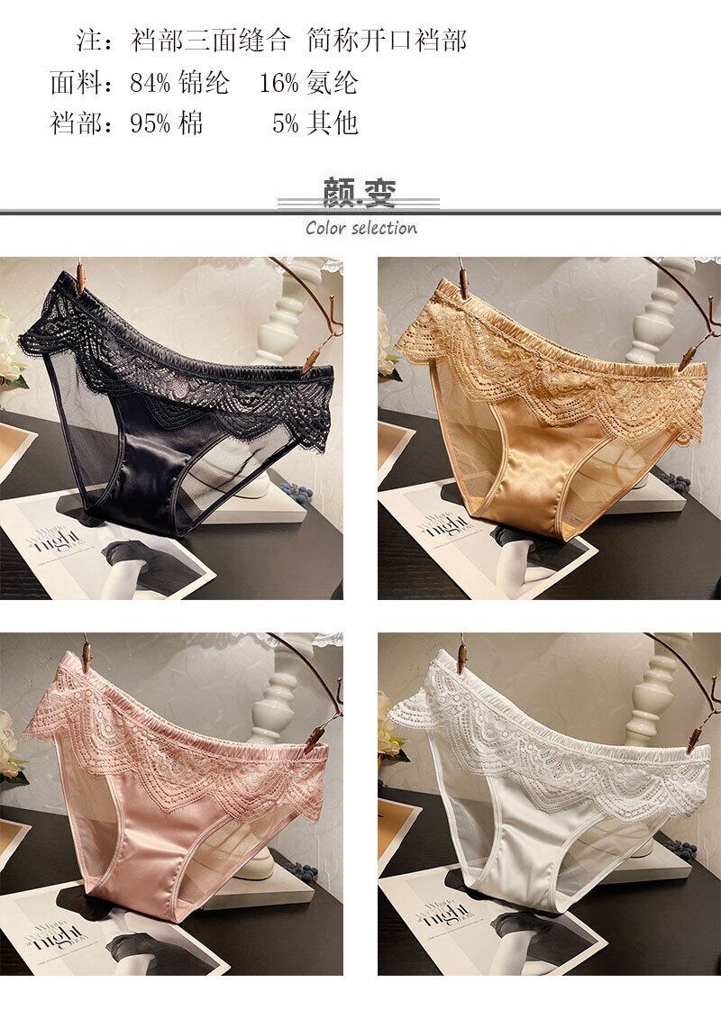 European and American light luxury satin lace panties women's fashion low waist sexy transparent see-through briefs pure cotton crotch bottoms コットン レース サテン ピュア ヨーロピアン 5450237671499229 | CFT~レディーファッション専門店~