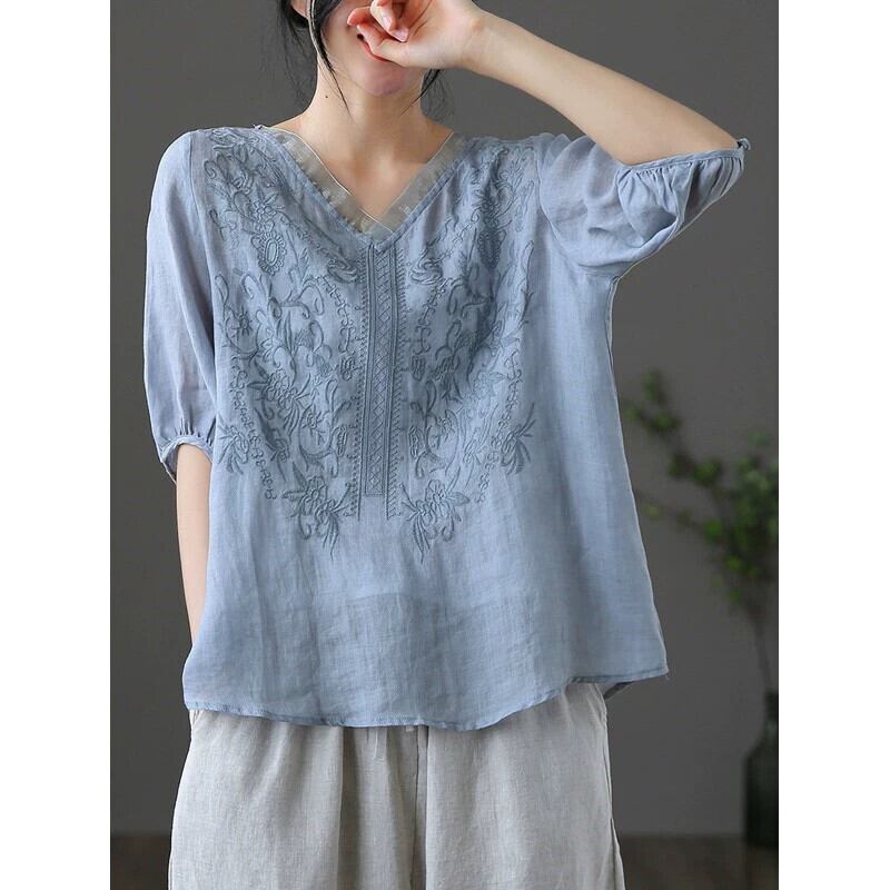 シャツ、婦人服、英国貿易トップス、半袖シフォン、サマーカット、スタンダードテール、シフォン、コットンとリネン、有名高級輸出リネン 夏物 fenb79556327515 | CFT~レディーファッション専門店~