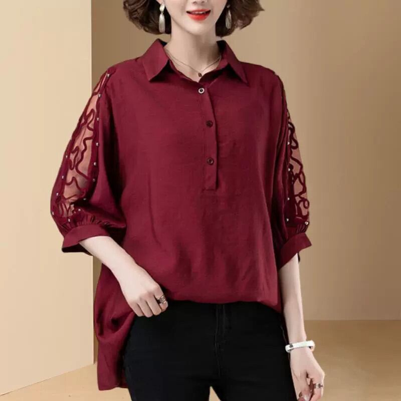 小さなシャツの女性のシフォン春と秋 2023 新しいシルク夏半袖トップシャツジャケット母ロングセクション腹カバー スプリング 春物 サマー 夏物 オータム 秋物 fenb53664437380 | CFT~レディーファッション専門店~