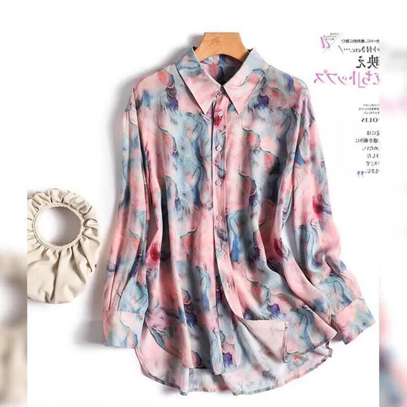 小さなシャツ春と秋 2023 新しいトップ長袖シフォンヨーロッパ夏のシルクシャツ底女性のシャツ花 ロング スプリング 春物 サマー 夏物 オータム 秋物 花柄 ヨーロピアン fenb82249108128 | CFT~レディーファッション専門店~