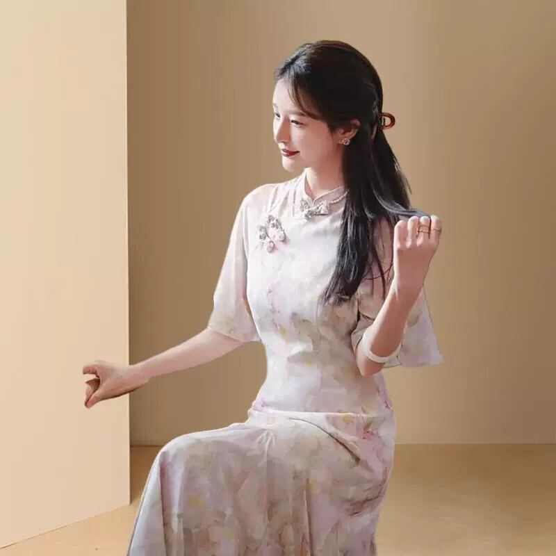 2023 新しいハイエンドサマードレスレディースシフォン春と秋花柄中国風国民風改良チャイナドレス妖精 スプリング 春物 夏物 オータム 秋物 fenb44727215964 | CFT~レディーファッション専門店~