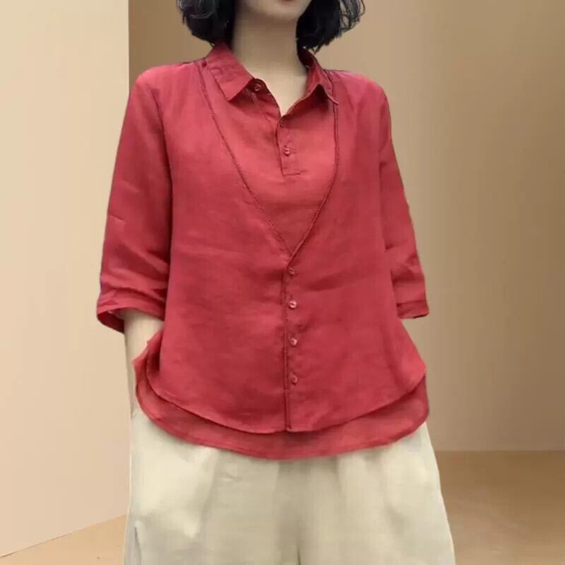 シャツ 2023 新作シャツ春と秋のブランドトップ婦人服小さなシャツ夏の七分袖ヨーロッパ雑貨綿と麻の母の服 コットン スプリング 春物 サマー 夏物 オータム 秋物 ヨーロピアン fenb3647548625 | CFT~レディーファッション専門店~