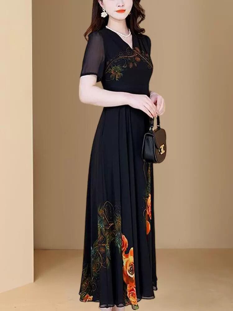 春と秋のシルクの女性の有名なドレス 2023 新しい夏のハイエンドのオリジナルシングルヨーロッパ商品 eign スタイル年齢を減らす壊れた花 スプリング 春物 サマー 夏物 オータム 秋物 フラワーデザイン ヨーロピアン fenb63862952197 | CFT~レディーファッション専門店~