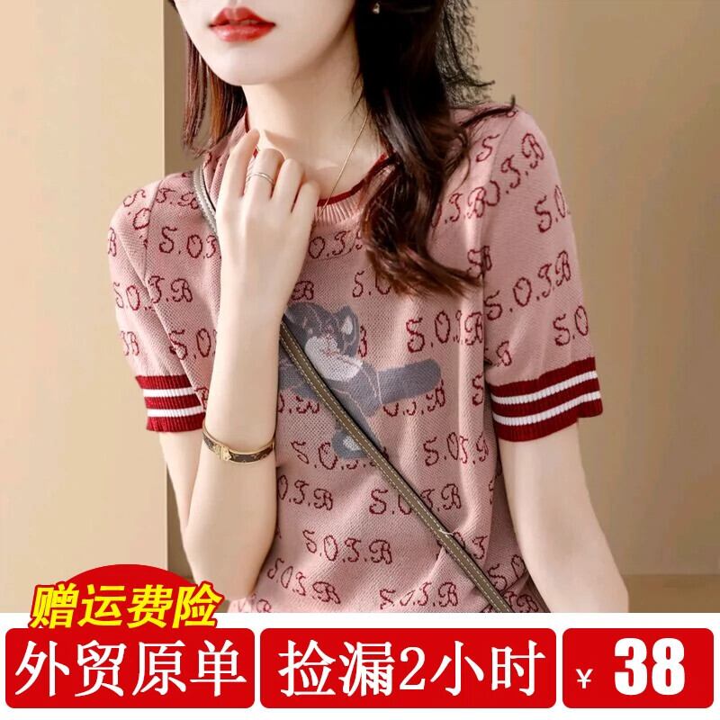 トップ半袖夏 2023 新しいヨーロッパ商品ニットアイスシルク春と秋ファッショナブルな女性のボトム tシャツカジュアルファッション スプリング 春物 サマー 夏物 オータム 秋物 ヨーロピアン fenb66604562293 | CFT~レディーファッション専門店~