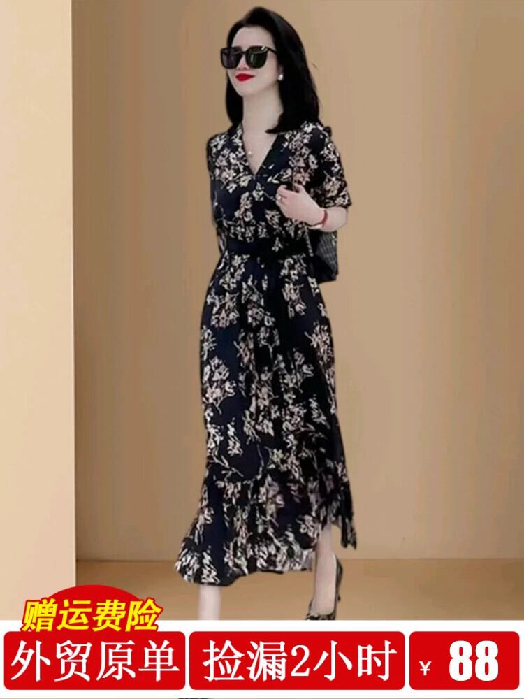 色:ブラックフローラル【カウンターエイン気質/エイン貿易大きいサイズ輸出/-末期国際ビッグブランドカットスタンダードクリアランススタイル広州十三行ヨーロッパ雑貨ヨーロッパステーション/シルク大きいサイズ】