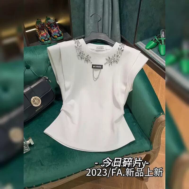 夏のヨーロッパ Tシャツ春と秋のトップス 2023 新しい女性の半袖 Tシャツ小さなシャツシルクノースリーブアセテートハイエンド スプリング 春物 サマー 夏物 オータム 秋物 ヨーロピアン fenb87127492401 | CFT~レディーファッション専門店~