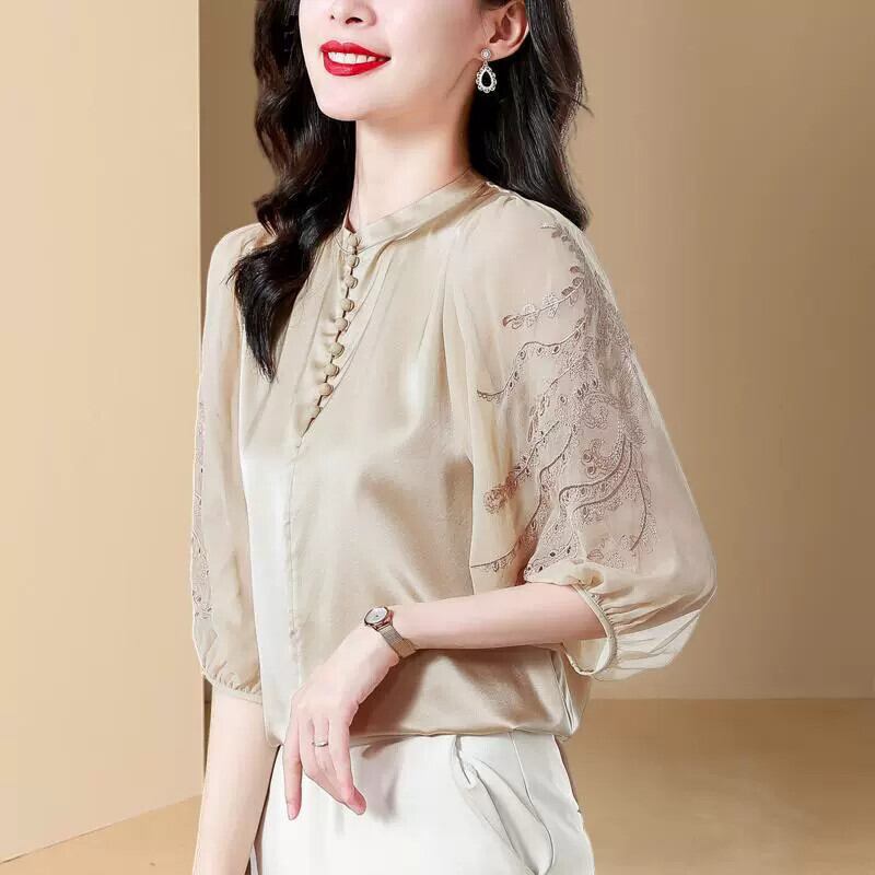 女性のシャツシルクミッドスリーブ七分袖小さなシャツ春と秋2023新しいシフォン夏のトップシャツ国民スタイル スプリング 春物 サマー 夏物 オータム 秋物 fenb84672083794 | CFT~レディーファッション専門店~
