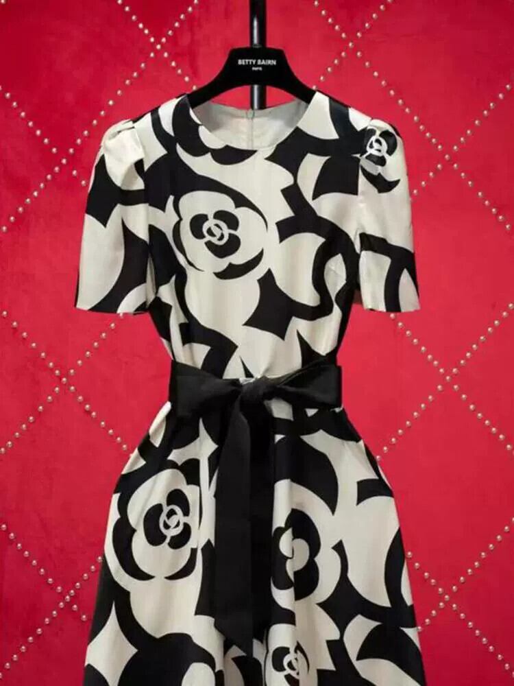 色:ブラックプリントワンピース【カウンターエイト高級品/高級海外有名品クリアランスセール/広州石三行ヨーロッパ雑貨ヨーロッパステーション/シルクシフォン】