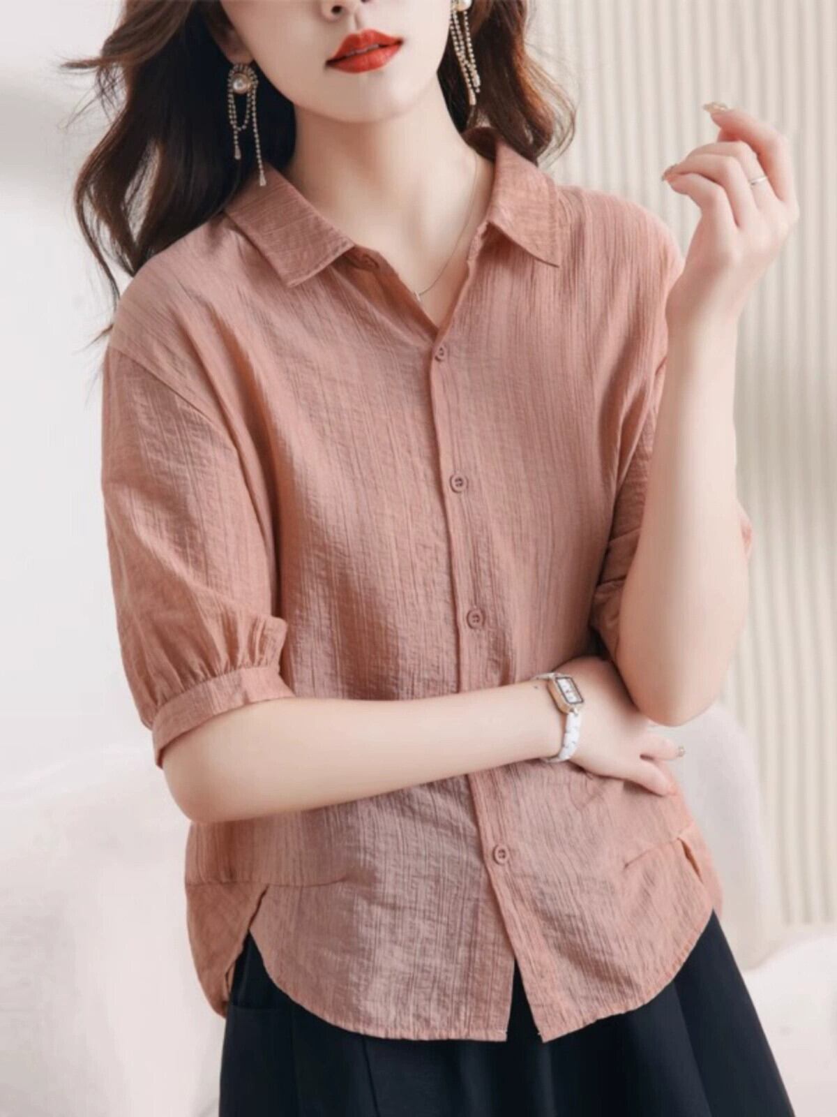 ヨーロッパ半袖コットンとリネンシャツシフォンアイン貿易女性の春と秋のトップスシャツ 2023 新しい夏のハイエンド スプリング 春物 サマー 夏物 オータム 秋物 ヨーロピアン fenb41310560248 | CFT~レディーファッション専門店~