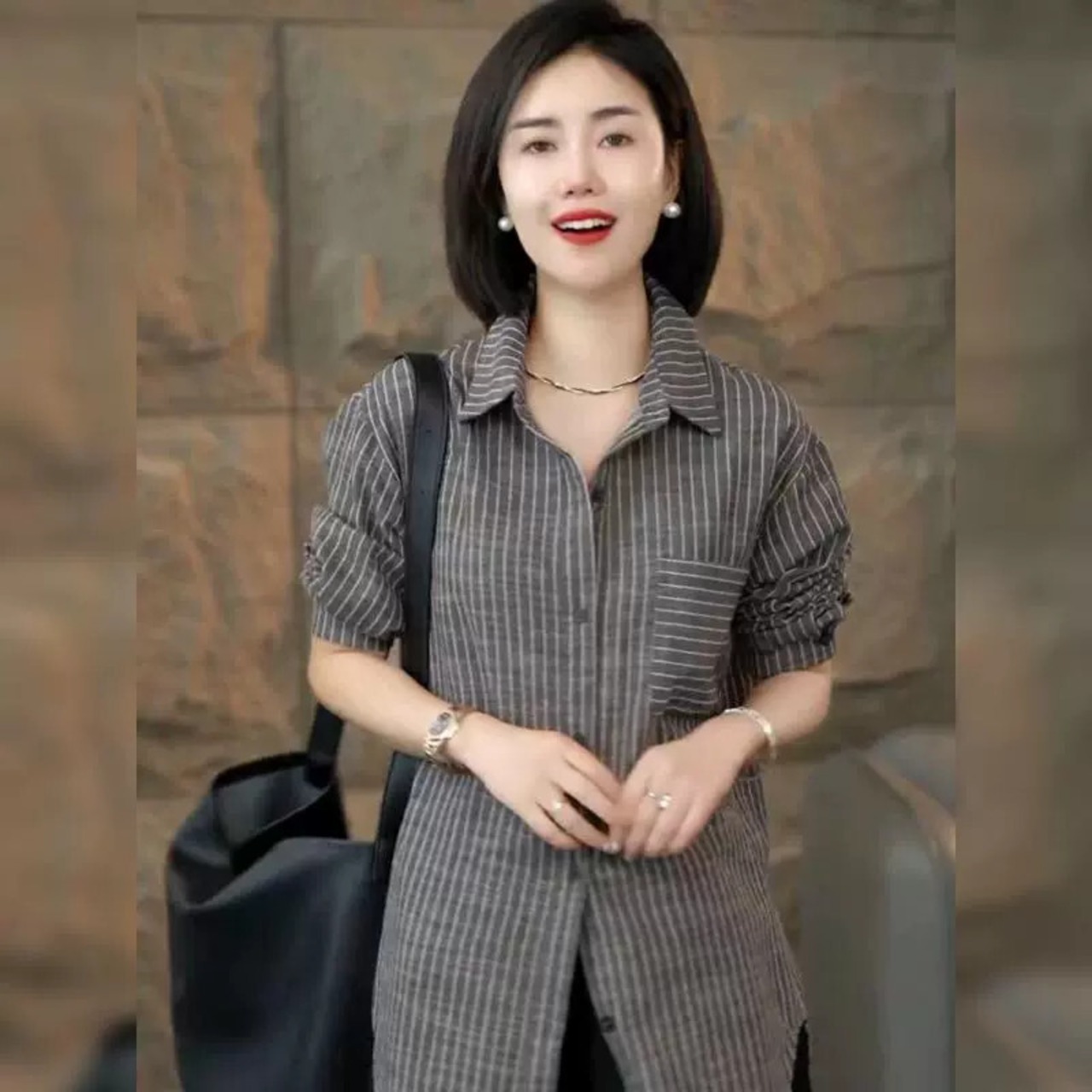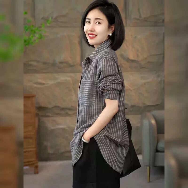 2023年の新しいストライプの秋のシャツ、春と秋のシャツ、トップス、小さなシャツ、女性のヨーロッパの商品、eign trade-saleのカーディガン スプリング 春物 オータム 秋物 ヨーロピアン fenb76361280889 | CFT~レディーファッション専門店~