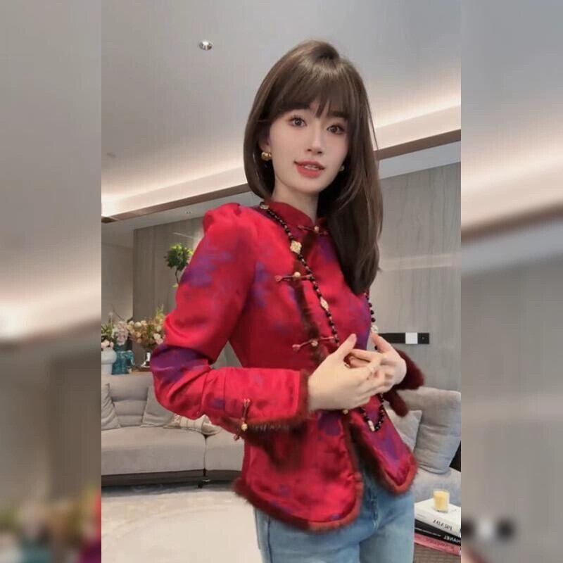 女性の秋と冬の小さなシャツシャツトップベースシャツ 2024 新年赤新しい中国風国民風インナーウェア レッド オータム 秋物 ウィンター 冬物 fenb63284414262 | CFT~レディーファッション専門店~