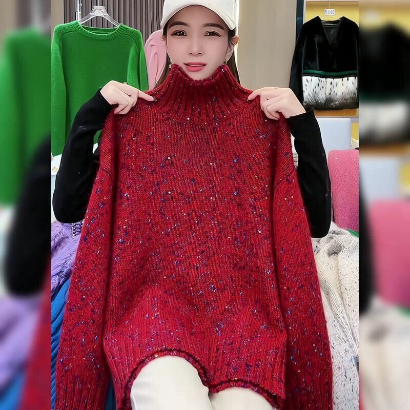 Chaoshan トップ女性のスパンコールニット底秋と冬 2024 新しい小さなセーターカシミヤセーター年赤いセーターインナーレイヤー レッド オータム 秋物 ウィンター 冬物 fenb75012715309 | CFT~レディーファッション専門店~