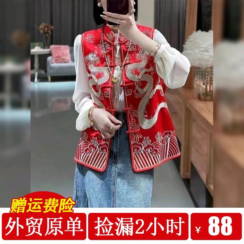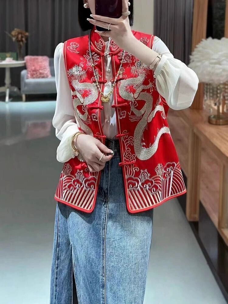 2024 中国風のベスト、国家風の女性の秋、冬、春、秋の年赤い刺繍唐装トップ レッド スプリング 春物 オータム 秋物 ウィンター 冬物 fenbT86030385692 | CFT~レディーファッション専門店~