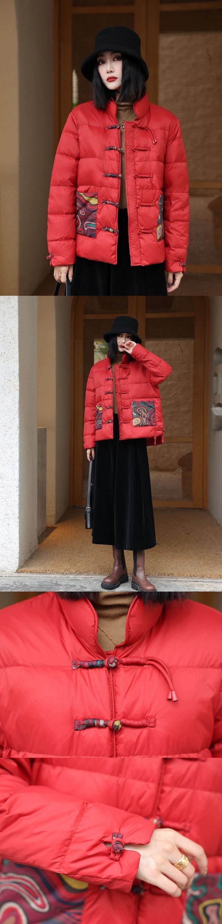 中国風コート 2024 新しい秋と冬の綿の衣類の女性の国家スタイルクリアランスダウン綿コート赤綿ジャケット唐スーツ レッド コットン オータム 秋物 ウィンター 冬物 fenbT89291577716 | CFT~レディーファッション専門店~