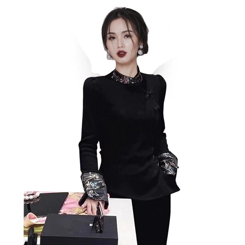 中国風底秋と冬のシャツ中国風シャツ女性の刺繍春と秋 2024 新しいトップス小さなシャツインナー スプリング 春物 オータム 秋物 ウィンター 冬物 fenbT52311415929 | CFT~レディーファッション専門店~