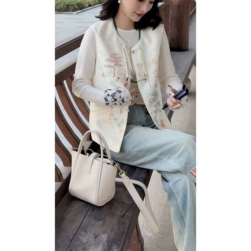中国風の刺繍トップス、唐スーツ、春と秋の女性のカジュアルな薄いベスト、ベスト、国民風のベスト 2024 新しいスタイル レッド スプリング 春物 オータム 秋物 fenbT48473852753 | CFT~レディーファッション専門店~