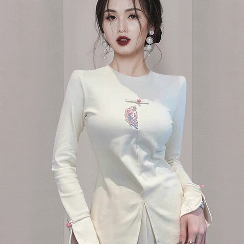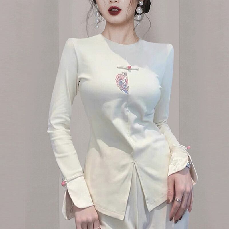 秋と冬の唐スーツトップス、春と秋のTシャツレディース、2024年の新しいスタイルの新しい中国風シャツ、内側に刺繍が入っています スプリング 春物 オータム 秋物 ウィンター 冬物 fenbT53510039135 | CFT~レディーファッション専門店~