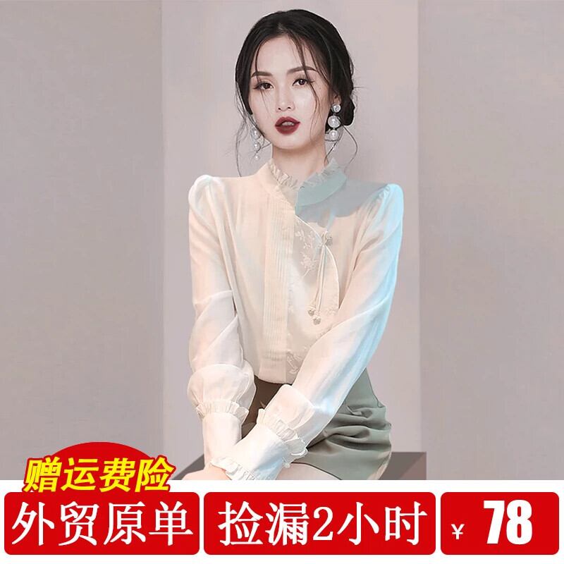 小さなシャツ中国風ボトリングシャツ女性の春と秋 2024 秋と冬の新しいシャツ馬の顔スカートトップ国民風インナーウェア スプリング 春物 オータム 秋物 ウィンター 冬物 fenbT2069774724 | CFT~レディーファッション専門店~
