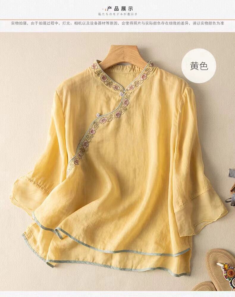 春と秋の七分袖トップ Tシャツヨーロッパ夏 2024 新しい綿とリネンの婦人服 Tシャツ中国風チャイナドレス薄いセクション コットン スプリング 春物 サマー 夏物 オータム 秋物 ヨーロピアン fenbT14255840235 | CFT~レディーファッション専門店~