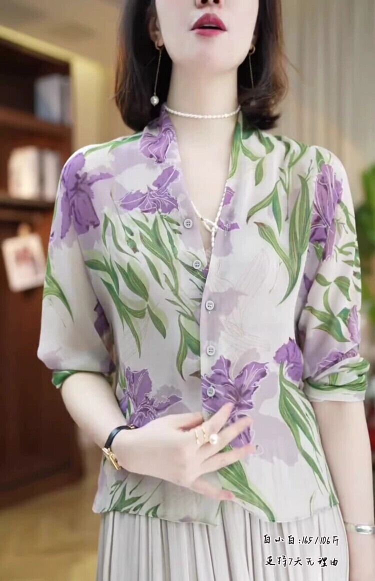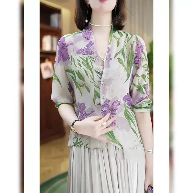 シャツ夏の女性のシルクトップス春と秋のシャツ 2024 スタイル小さなシャツヨーロッパ花花スタイルミドルスリーブ スプリング 春物 サマー 夏物 オータム 秋物 花柄 ヨーロピアン fenbT36192577215 | CFT~レディーファッション専門店~