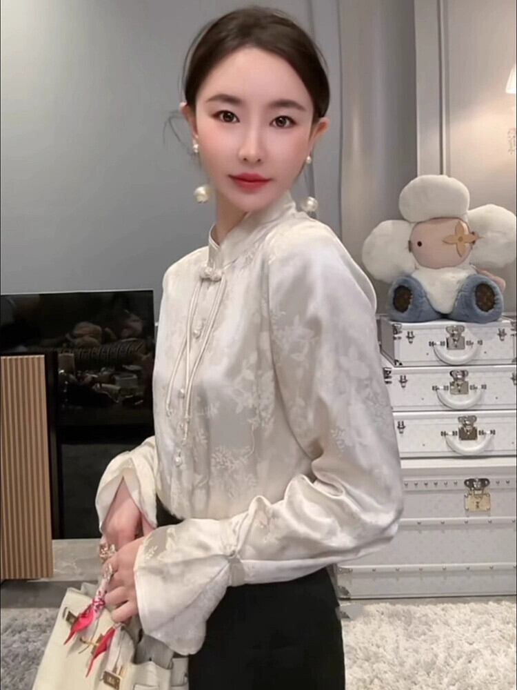 唐装スタンドカラーボトリングシャツ小さなシャツ女性の国民風トップ新しい中国風シャツ 2024 新しい春、秋、秋と冬 スプリング 春物 オータム 秋物 ウィンター 冬物 fenbT25226862415 | CFT~レディーファッション専門店~