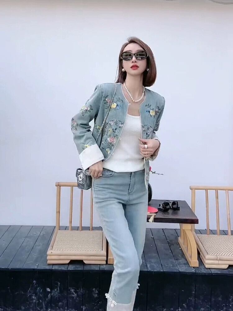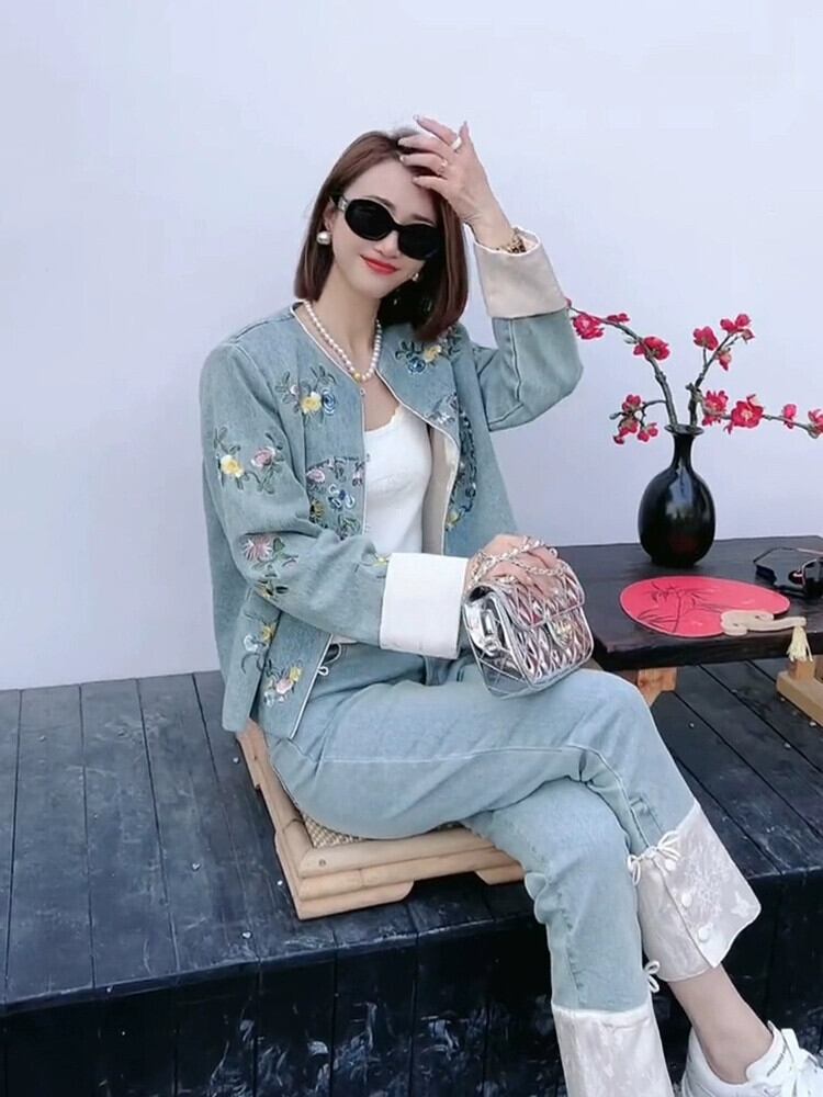 ドレープのある国民風ストレートレッグジーンズ春と秋の狭いバージョンの新しい中国風2024新しい女性のハイウエスト梨型痩身 スプリング 春物 オータム 秋物 fenbT55931007693 | CFT~レディーファッション専門店~