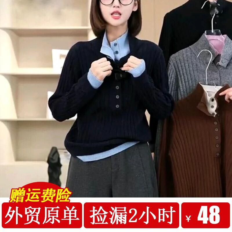 2024 小さなシャツ女性のトレンディ汕頭秋と冬ヨーロッパボトリングシャツトップ春と秋ニットタートルネックセーター偽二枚 スプリング 春物 オータム 秋物 ウィンター 冬物 ヨーロピアン fenbT23258527531 | CFT~レディーファッション専門店~