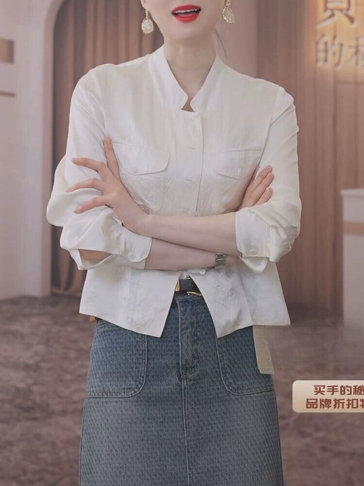 スプリングコートの女性のシャツ日焼け止めシャツ 2024 新しい春と秋のサテンシャツトップ新しい中国風のアウターウェア 春物 オータム 秋物 fenbT26068139787 | CFT~レディーファッション専門店~