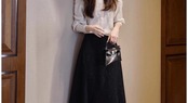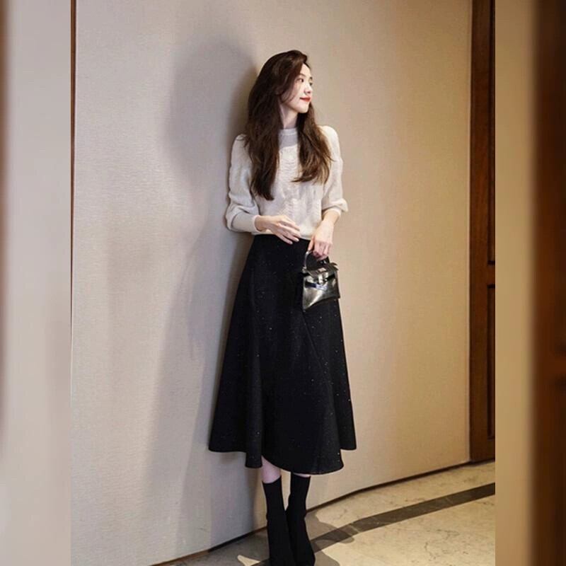ハーフスカートニッチ婦人服 2024 新しい a ライン秋と冬 ese ウールミッドレングス傘スカートヘボンスタイル明るいシルク オータム 秋物 ウィンター 冬物 Aライン fenbT2238993117 | CFT~レディーファッション専門店~