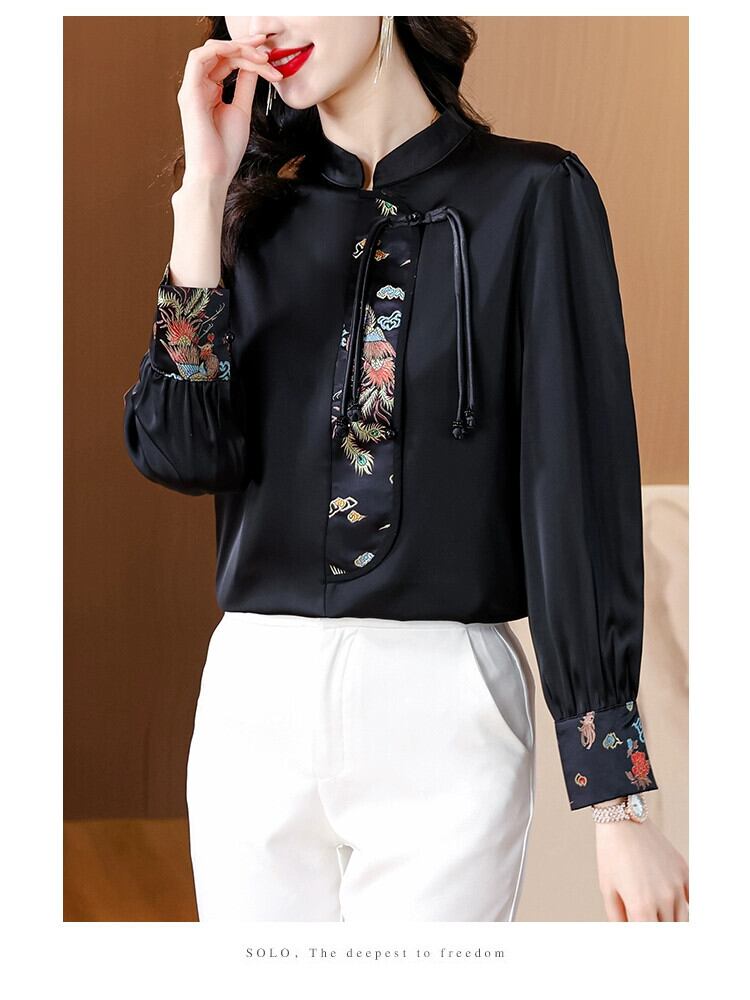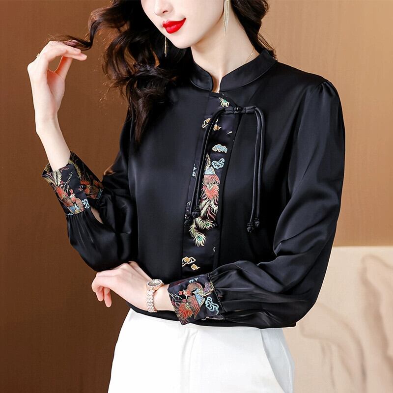 中国風のトップス、ボタンアップシャツ、春と秋の女性用シフォンボトムシャツ、軽い豪華な2024年の新しい国民スタイル スプリング 春物 オータム 秋物 fenbT27859871435 | CFT~レディーファッション専門店~