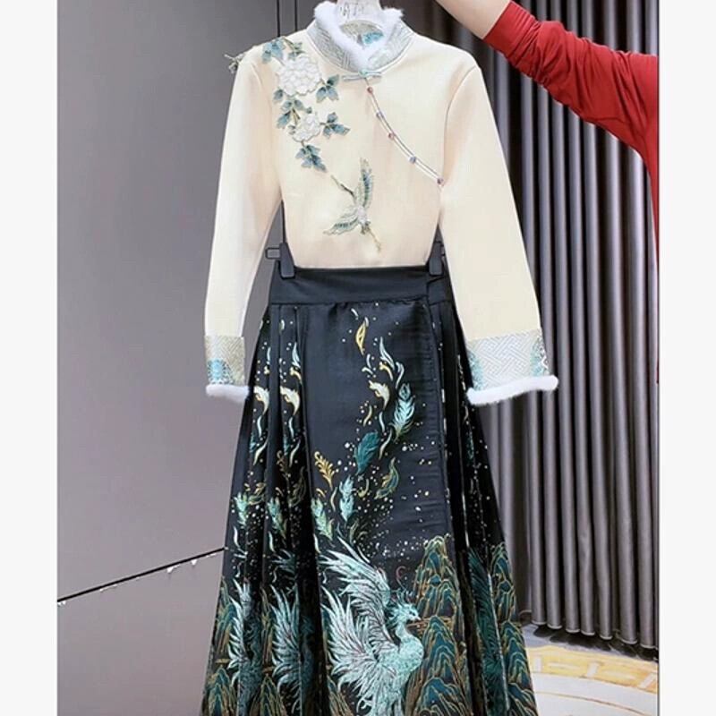女性の秋冬 2024 小さな春と秋のハーフレングススカート中国風中国風改良された馬の顔スカート スプリング 春物 オータム 秋物 ウィンター 冬物 fenbT21649594920 | CFT~レディーファッション専門店~