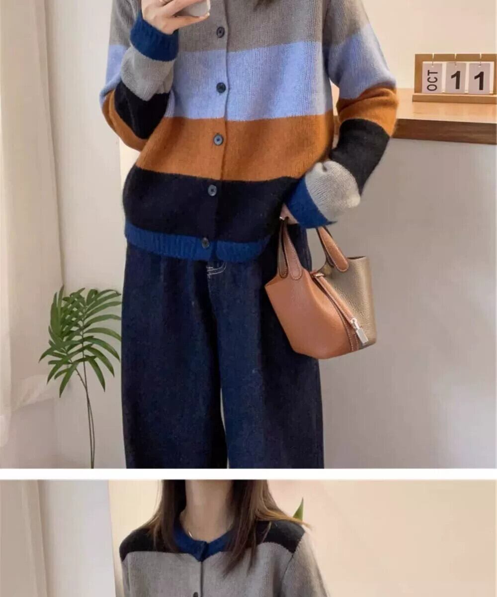 底ヨーロッパカシミヤカーディガントップ 2023 新しいニット春と秋のストライプの女性の小さなシャツセータージャケット スプリング 春物 オータム 秋物 ヨーロピアン fenbT52461317499 | CFT~レディーファッション専門店~