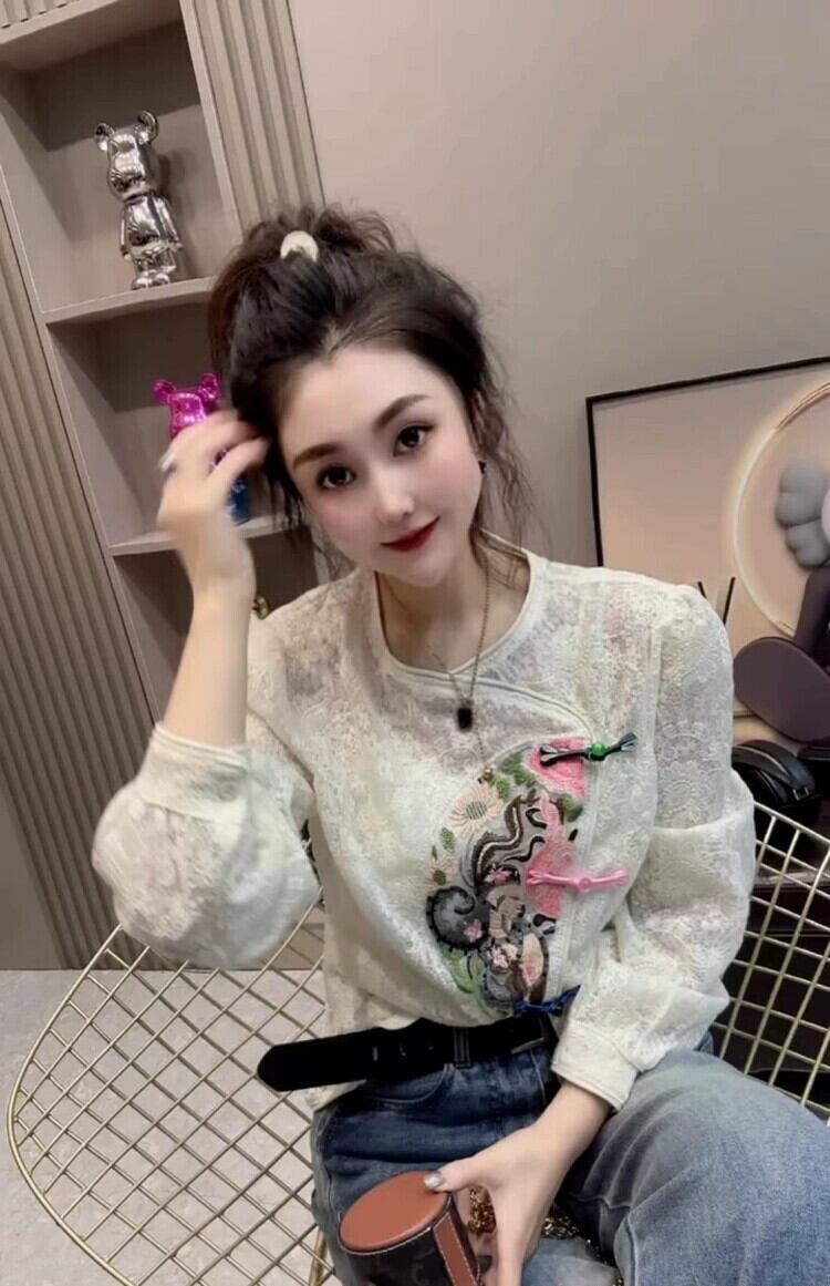 国民風シャツ小さなシャツ刺繍レースシャツ女性の 2024 秋冬春秋中国風のトップ底入れ レッド スプリング 春物 オータム 秋物 ウィンター 冬物 fenbT99451693111 | CFT~レディーファッション専門店~