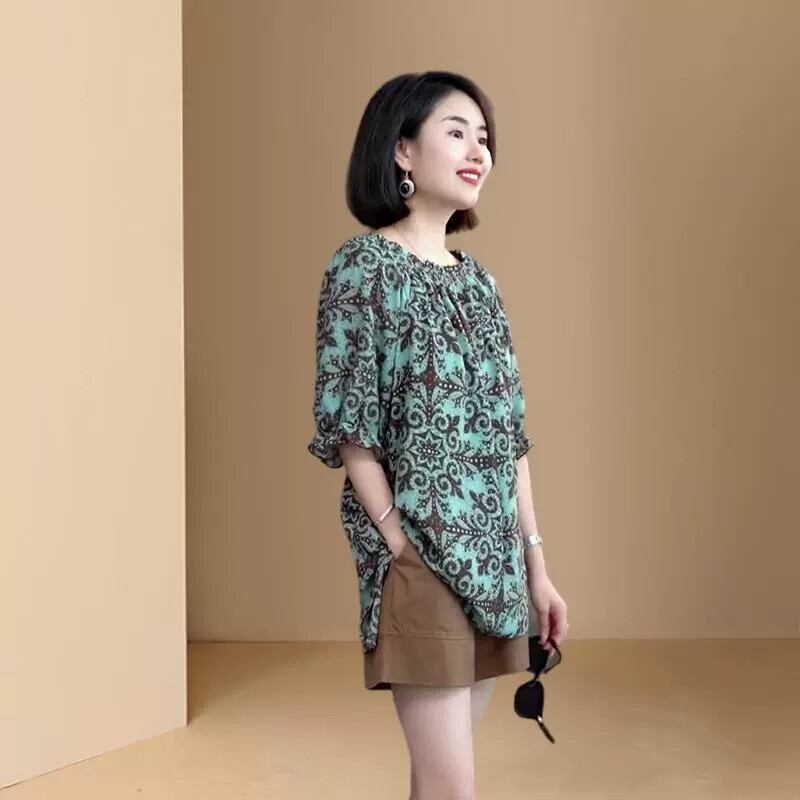 色:グリーンコーヒートップ+キャラメルショートパンツ[カウンター高級品永貿易高級品/高級国際有名品クリアランスセール/広州十三線欧州駅/シルクシフォン]