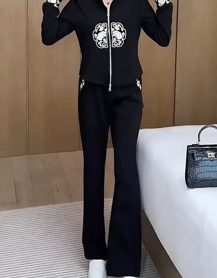 2024 新しいツーピーススーツ刺繍春と秋の女性のファッショナブルで有能なカジュアル春の摩耗新しい中国のスウェットシャツスタイル レッド スプリング 春物 オータム 秋物 fenbT85467964203 | CFT~レディーファッション専門店~