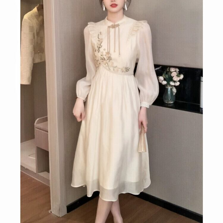 ドレス春と秋 2024 新しい女性のシフォン新中国風の偽ツーピース刺繍国家風の長袖ウエストスカート ロング レッド スプリング 春物 オータム 秋物 fenbT20708642481 | CFT~レディーファッション専門店~
